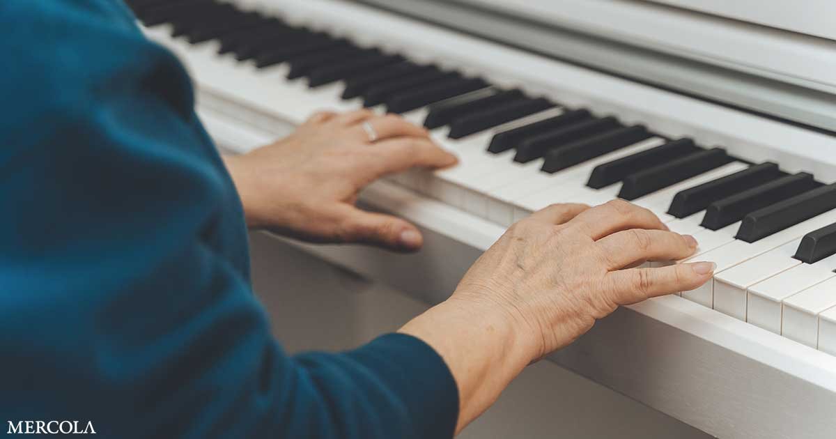 • Music may protect the brain in multiple ways — A study published in Aging & Mental Health found that musicians were 64% less likely to develop mild cognitive impairment or dementia.24 Another study published in BMC Neurology suggests this protection may come from several overlapping effects, including improved executive function and working memory, enhanced brain plasticity, sensorimotor repair, reduced stress and depression, and increased social engagement.25